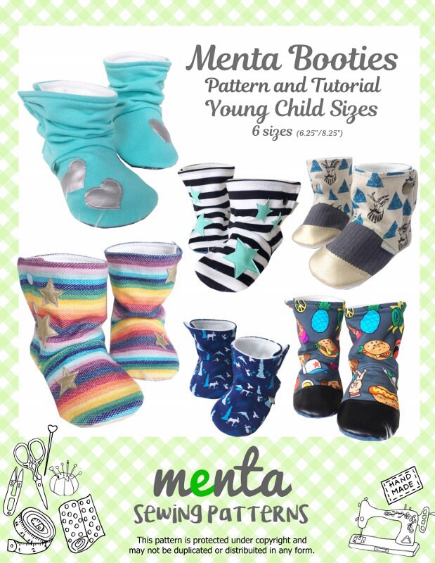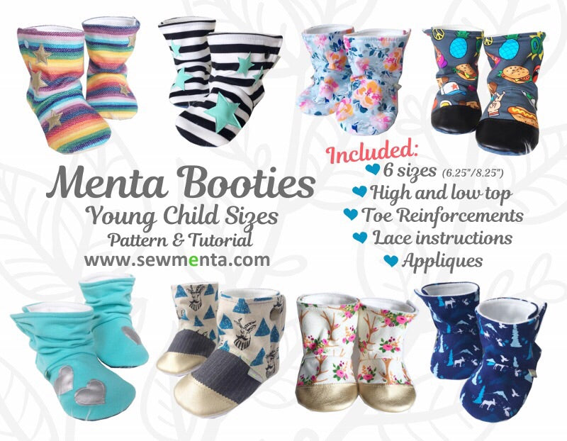 Young Child Menta Booties PDF Sewing Pattern and Tutorial Young Child sizes