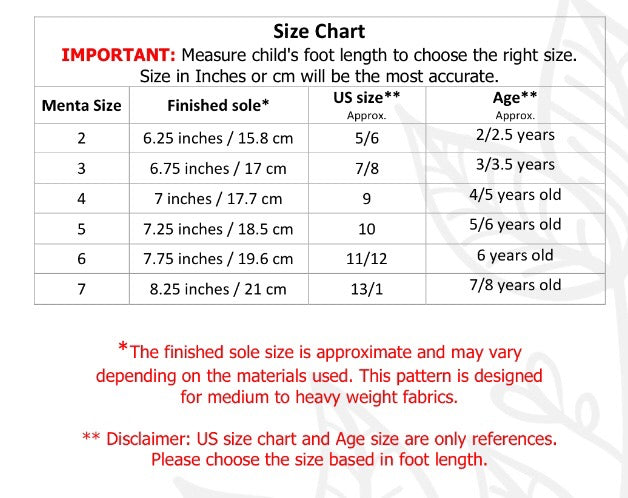 - Size 2 / 6.25” finished sole (fit around 2/3 year old)