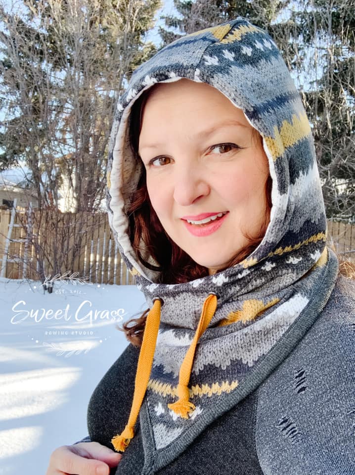 The Menta Snugglehood includes instructions to make the bottom seam exposed or hidden, and the option to finish the face opening with or without ribbing. Additionally, there are photo instructions to add a casing so that you can adjust the face opening with elastic/toggle or drawstring ;)