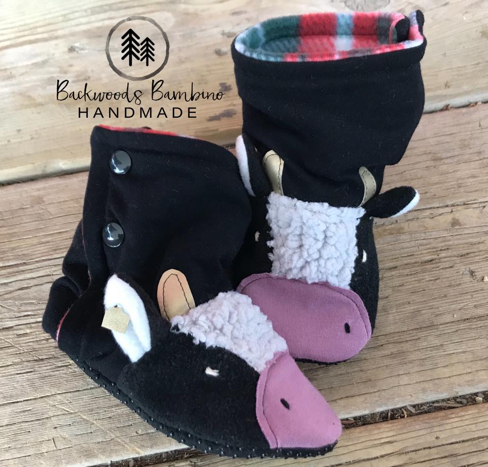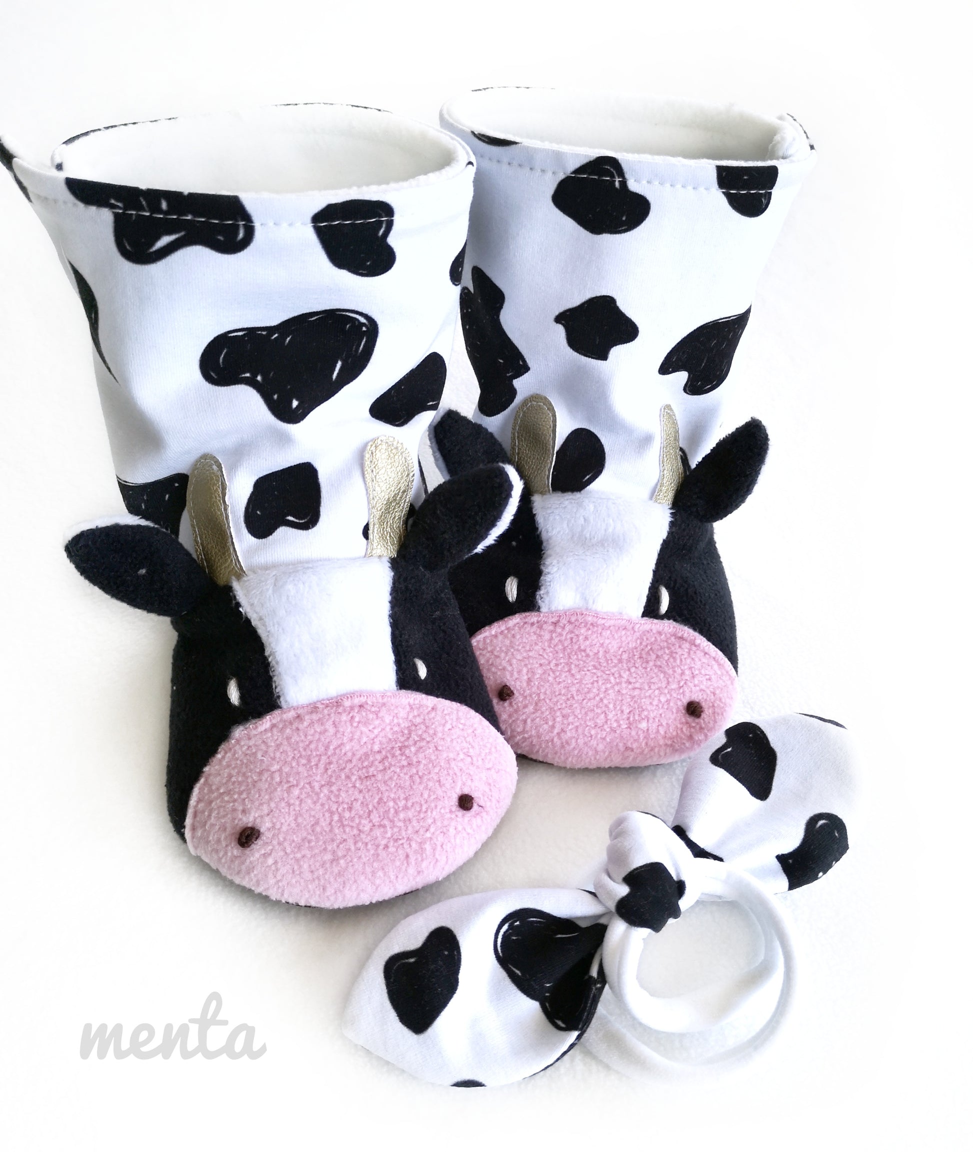 This listing is for a PDF file with instructions and pattern pieces to make your own Cow booties. This is not an actual pair of booties.