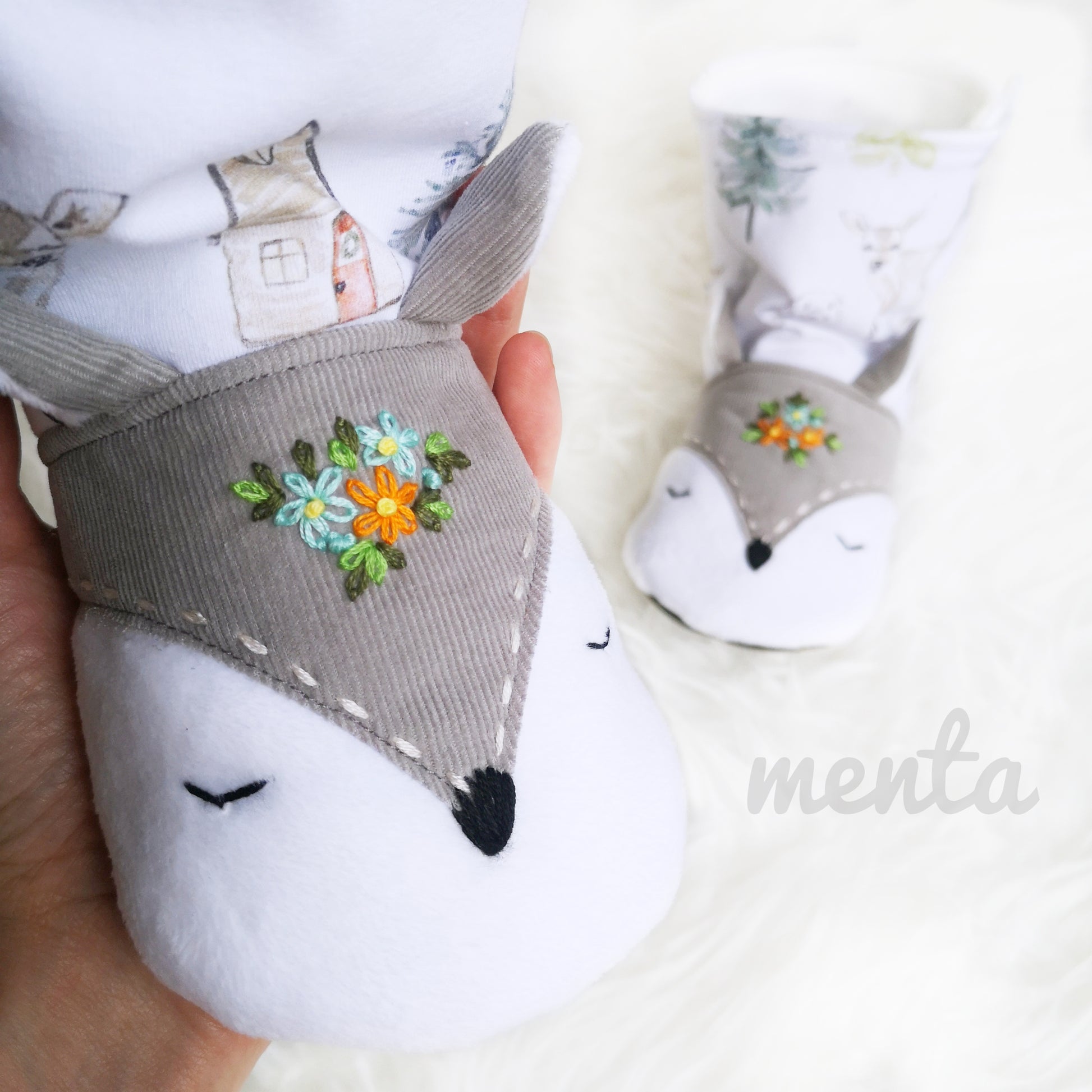 This listing is for a PDF file with instructions and pattern pieces to make your own Fox/Wolf booties. This is not an actual pair of booties.
