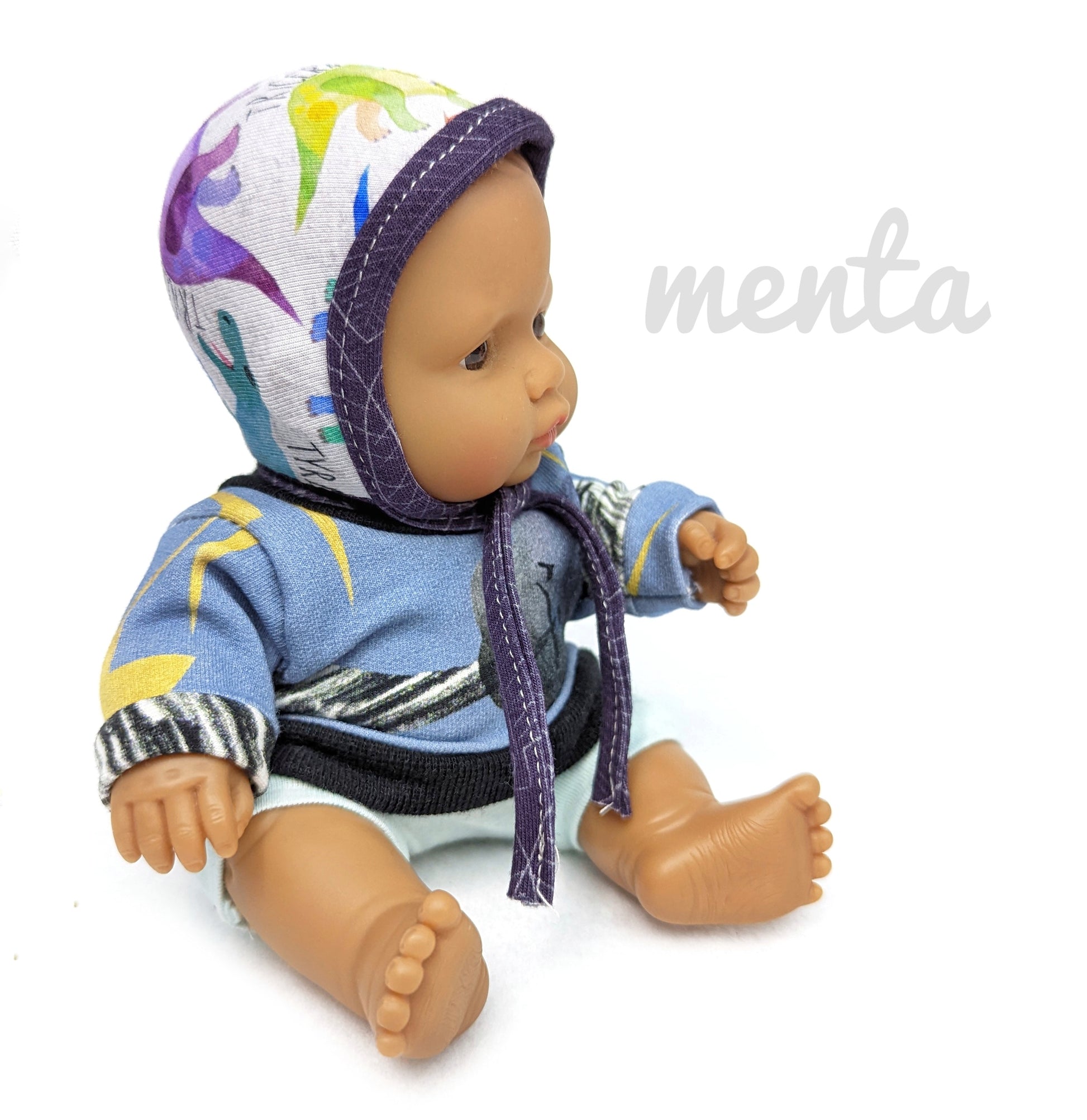 This pattern was designed to fit a 8" Miniland doll perfectly and any other 8.5" head circumference dolls.