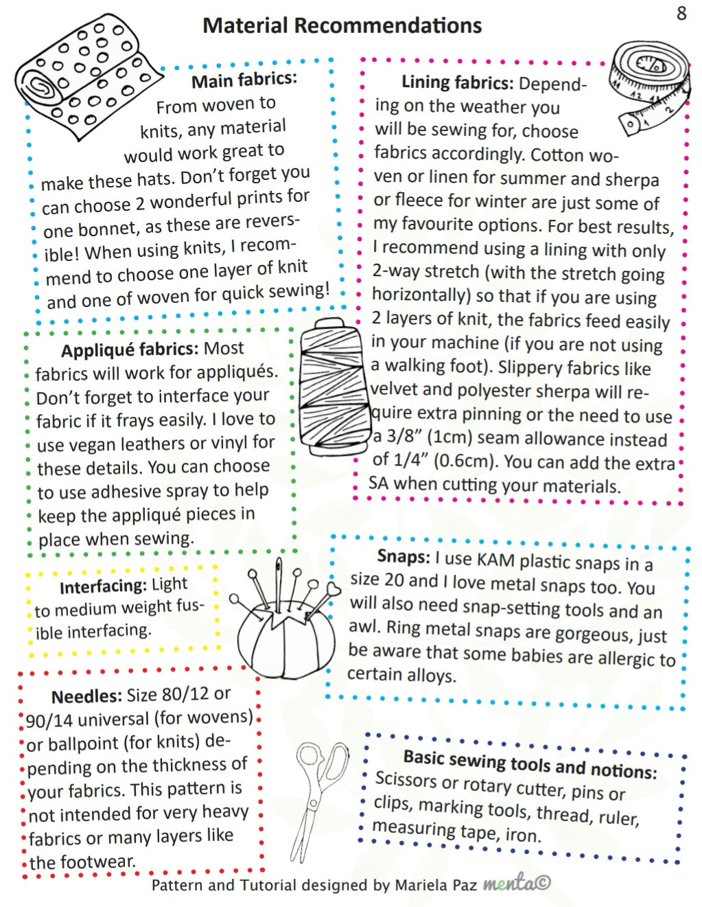 There’s always a good time to wear a bonnet! This new Menta sewing pattern and tutorial offers a version of the cute classic hat that is suitable for any material. No matter if it’s too cold or too sunny, you can make beautiful bonnets for little people in 6 sizes, that will protect them from the wind and sun.