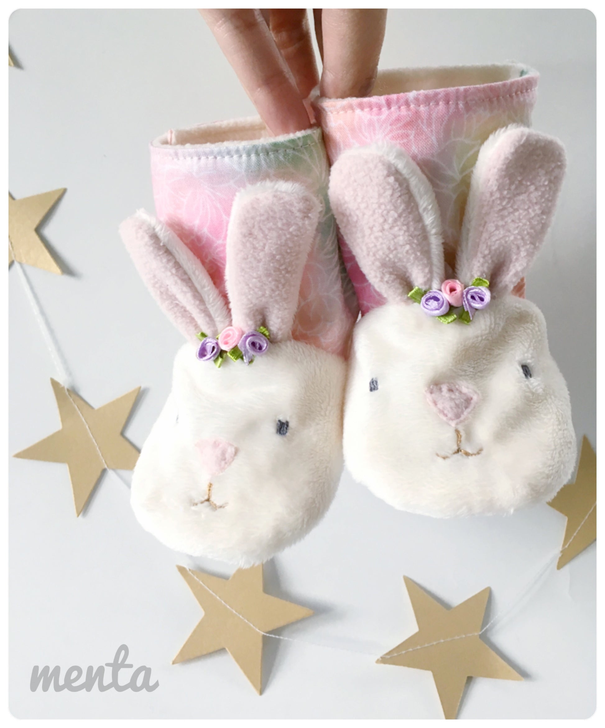 Baby Sizes Menta Bunny Booties Add-on sizes Newborn to 24 months sewing pattern and tutorial