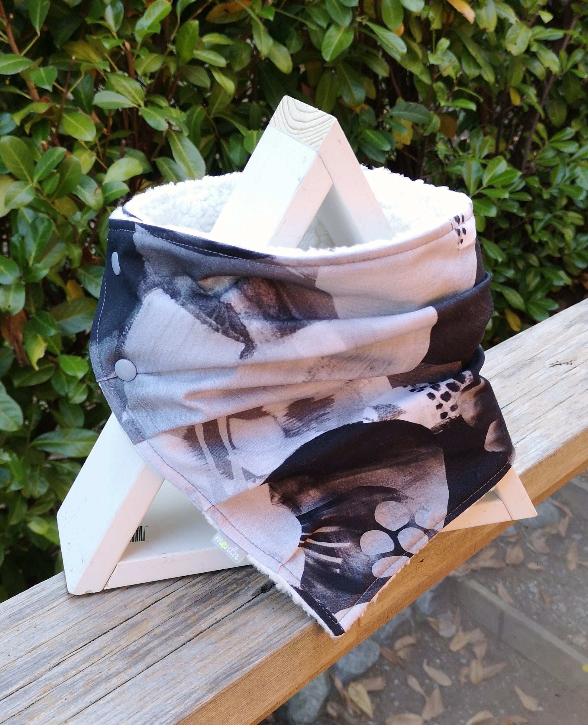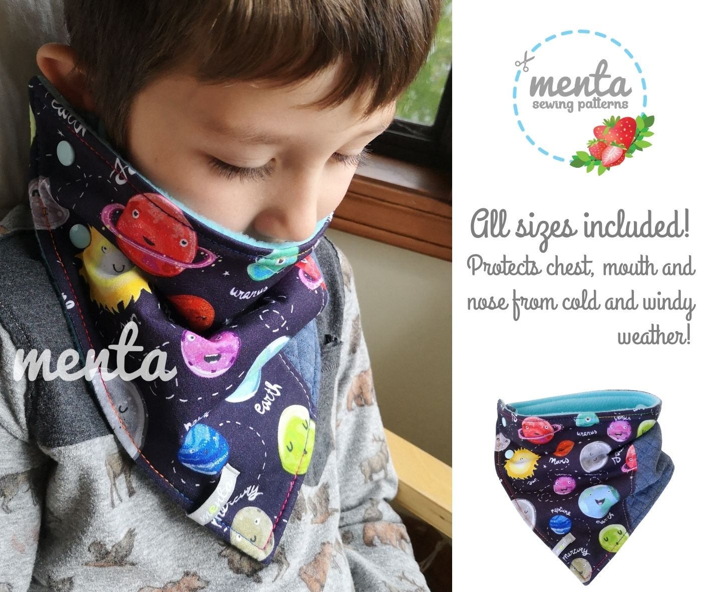 Pick your favourite materials (knit/woven) and trims, and you can create a few amazing neckwarmers in just a couple of hours! Don’t forget that you can embellish your neckwarmer with any Menta appliqué templates to add the perfect personal touch!