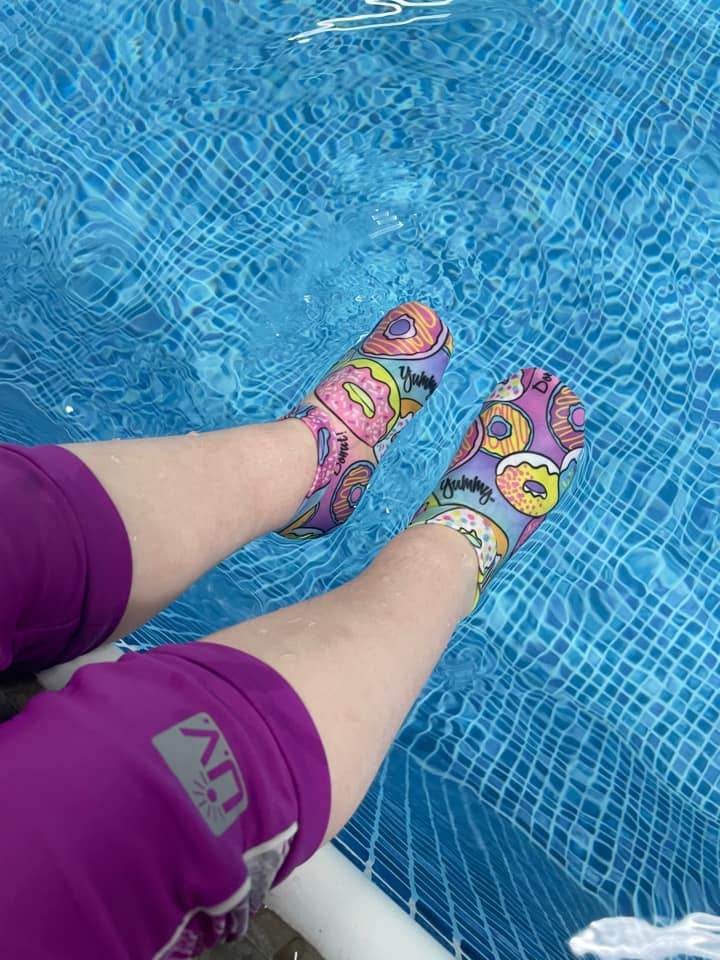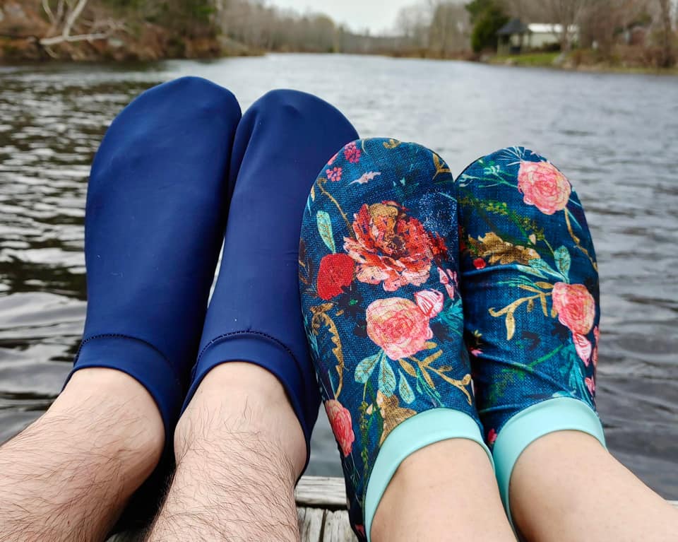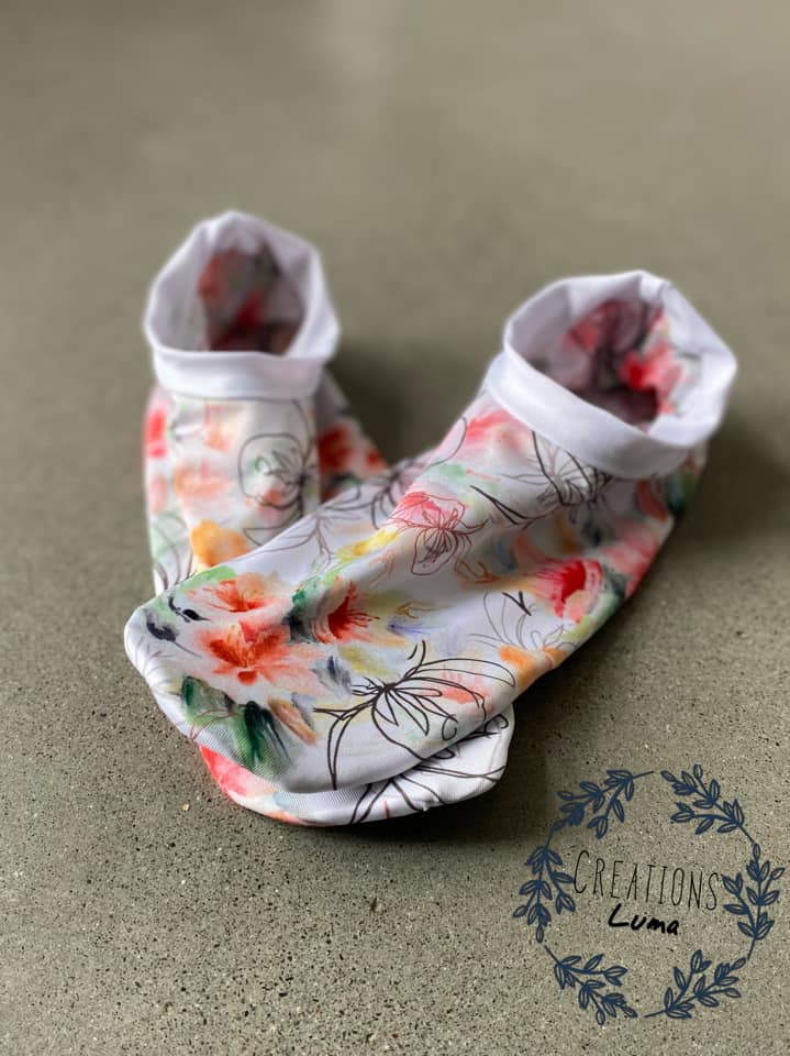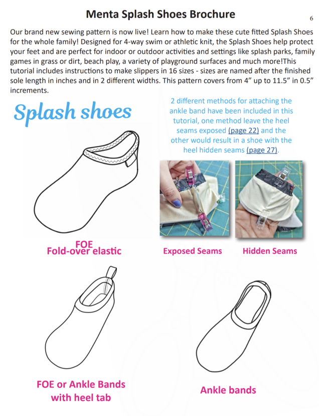 Our brand new sewing pattern is now live! Learn how to make these cute fitted Splash Shoes for the whole family! Designed for 4-way swim or athletic knit, the Splash Shoes help protect your feet and are perfect for indoor or outdoor activities and settings like splash parks, family games in grass or dirt, beach play, a variety of playground surfaces and much more!