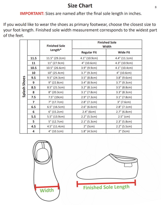- 8” (20.3cm) finished sole length