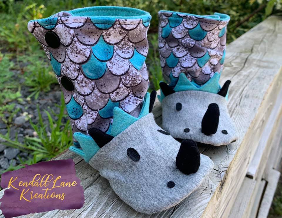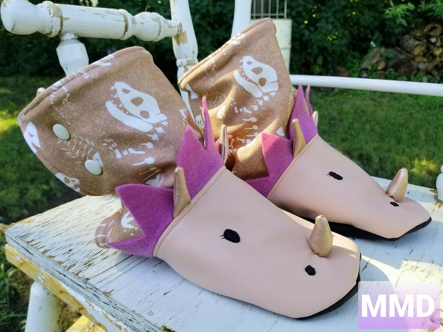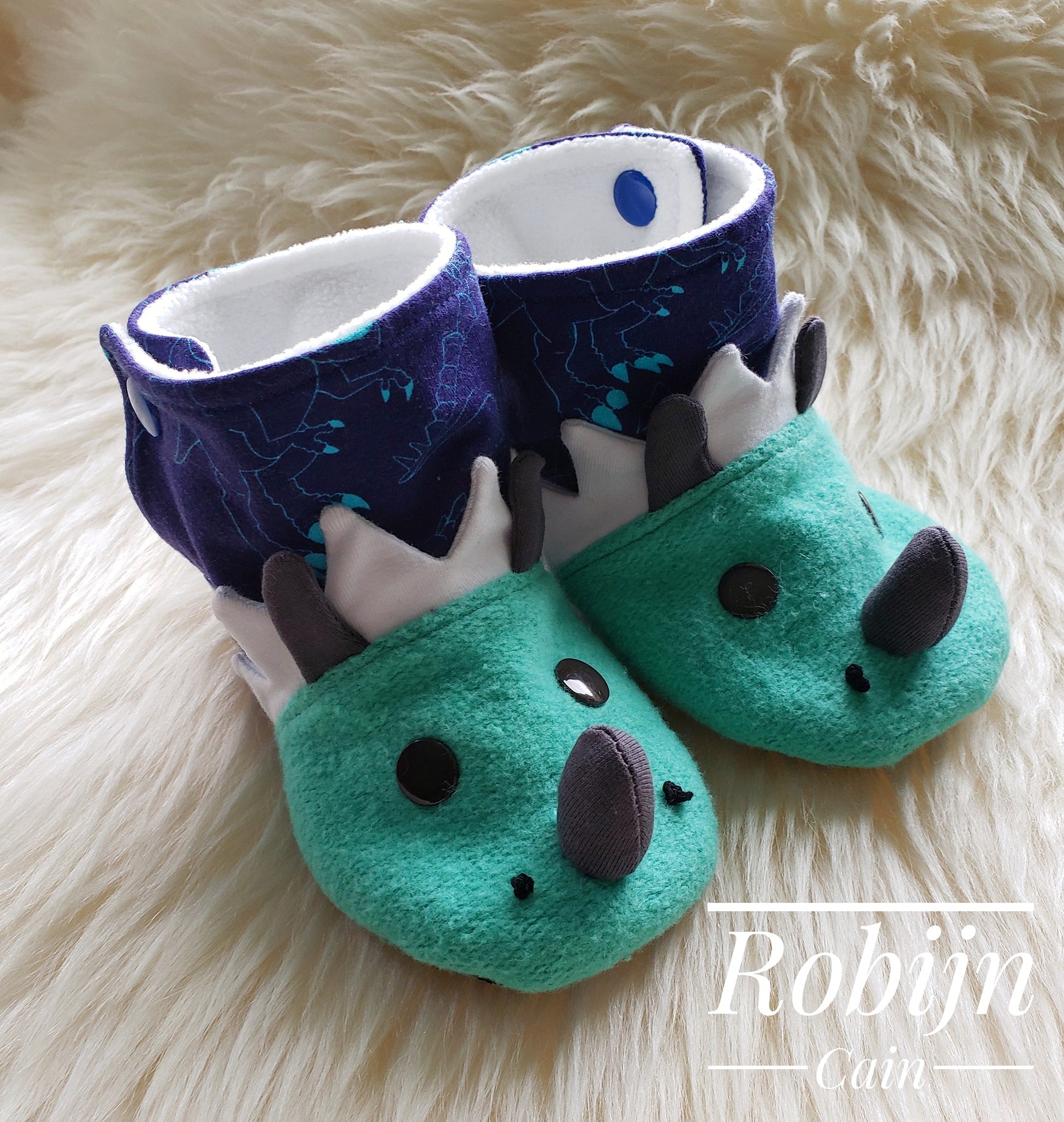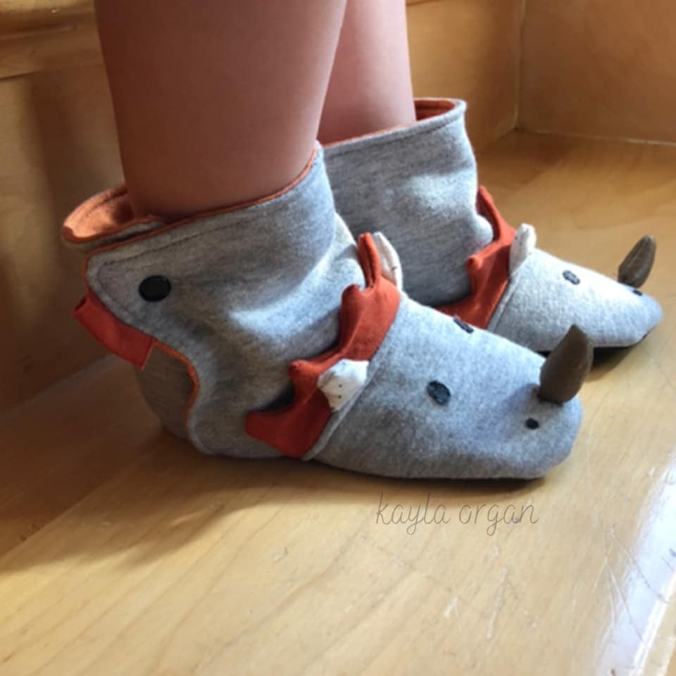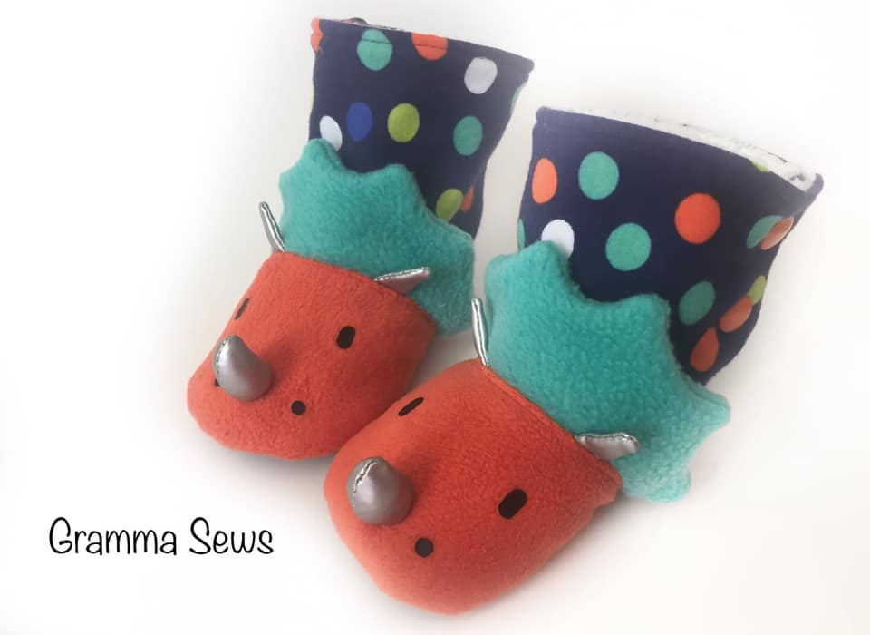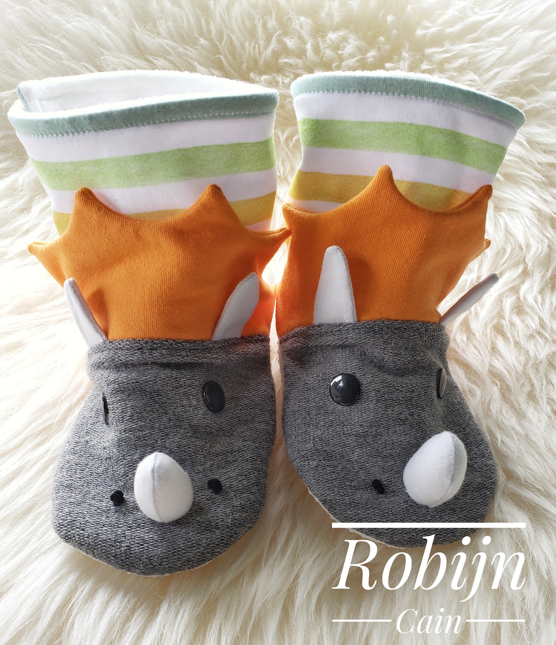 This listing is for a PDF file with instructions and pattern pieces to make your own Triceratops booties. This is not an actual pair of booties.
